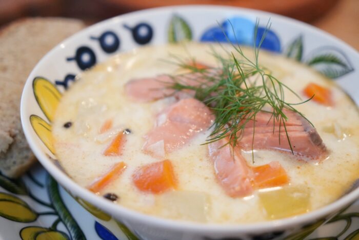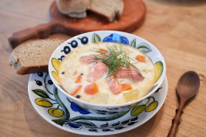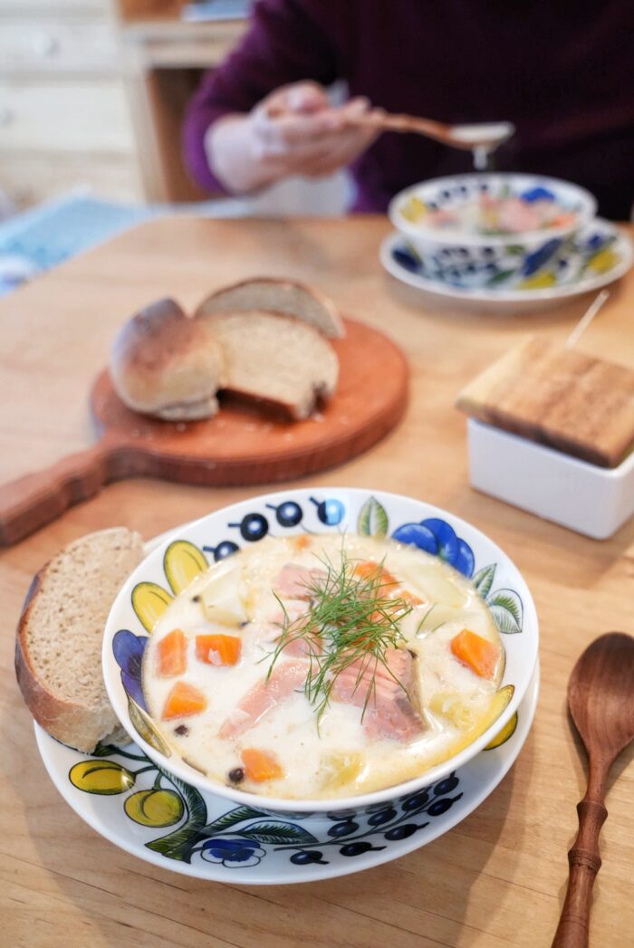 フィンランドの人たちはサーモンスープとライ麦パンを食べていました。